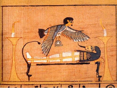(விழிப்படைந்த ஆத்மா பறப்பதை குறிக்கும் எகிப்திய ஓவியம்)