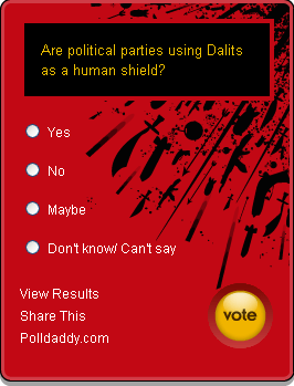 தங்களது சுயநலக் கொள்ளைகளுக்கு அரசியல்வாதிகள் தலித்துகளை கேடயங்களாகப் பயன்படுத்துகின்றனர். தங்களுக்குக் கிடைக்கும் தண்டனைகளையும், தாங்கள் பெற வேண்டிய தாக்குதல்களையும் இந்தக் கேடயங்கள் அனுபவிக்கும்படி செய்து விடுகின்றனர். கிள்ளுக் கீரை போல தலித்துகளை எப்படி வேண்டுமானாலும் உபயோகித்துக் கொள்ளலாம் என்பது அவர்களின் எண்ணம்.