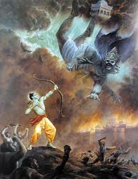 இராமரிடமே சவால் விட்ட மகாராக்ஷாவும் சண்டையில் இறந்துவிடவே, தன் சகோதரனின் மகன் இறந்ததைக் கேட்ட ராவணன் ஆழ்ந்த துயரத்தில் மூழ்கினான். இப்போது களத்திற்கு அனுப்புவதற்கு அவனுடைய மகன் இந்திரஜித்தைத் தவிர வேறு யாருமே அவனுக்கு இல்லை. அவன் தருவதுதான் தனது கடைசி நம்பிக்கை என்று சொல்லி இந்திரஜித்தை ராமனிடம் போர் புரிவதற்கு அனுப்பி வைத்தான். ஏற்கனவே அவன் ராம-லட்சுமணர்களிடம் மோதியிருந்ததால் அவனுக்கு அவர்களது வலிமை நன்கு தெரியும். அதனால் அவன் இம்முறை தனக்கு அவர்கள் தெரியும்படியும், ஆனால் தான் தெரியாதவாறு தன்னை புகைத் திரை போட்டு நன்கு மறைத்துக்கொண்டும் அவர்களைத் தாக்கினான். அப்படி நடந்த மறைமுகச் சண்டையில் நூற்றுக்கணக்கான வானரர்கள் கொல்லப்படவே, நேரடியாக நடக்காத இந்தச் சண்டையில் எதிரிப் பக்கம் யார் இருந்தாலென்ன, போனாலென்ன என்று எண்ணி பிரம்மாஸ்திரம் விட்டு இந்திரஜித் உட்பட எல்லோரையும் கூண்டோடு அழிப்பதற்காக லக்ஷ்மணன் இராமரிடம் அனுமதி கேட்டான். ஒரு அரக்கனை அழிக்க எல்லோரையும் கொல்வது கூடாது என்று சொல்லி இராமர் அதற்கு ஒத்துக்கொள்ளவில்லை.