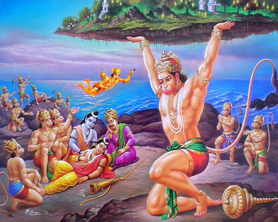 லக்ஷ்மணன் பலத்த அடிபட்டு விழுந்திருந்தாலும் உயிரோடிருப்பதை வானரர்களின் வைத்தியன் சுஷேனா அவனைச் சோதித்துக் கண்டு பிடித்தான். அவன் அனுமனிடம் சற்றுத் தள்ளியிருக்கும் மலை உச்சியிலிருந்து ஒரு குறிப்பிட்ட மூலிகையைக் கொண்டுவருமாறும், அதை எப்படிக் கண்டறிவது என்னும் விவரங்களையும் விளக்கிச் சொன்னான். அனுமனும் அங்கு பறந்து சென்று பார்த்ததில், வைத்தியர் சொன்னதை வைத்துக்கொண்டு அந்த மூலிகையைக் கண்டுபிடிக்க முடியாததாலும், நேரம் செல்வதால் லக்ஷ்மணனுக்கு அதனால் ஏதும் அசம்பாவிதம் நடந்து விடக்கூடாது என்பதாலும், அந்த மலையின் உச்சி பாகத்தை அப்படியே பெயர்த்து எடுத்து வந்தான். சுஷேனா தானே மூலிகையைக் கண்டுபிடித்து, அதை லக்ஷ்மணனுடைய காயத்தில் வைத்துக் கட்டு போட்டார். சிறிது நேரத்தில் லக்ஷ்மணன் மூர்ச்சை தெளிந்து விழித்துக் கொண்டதும், இராமர் அவனை ஆரத் தழுவி உச்சி முகர்ந்தார்.